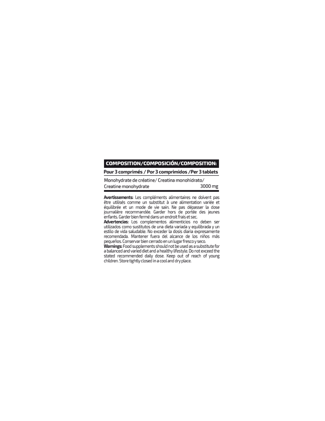 | Creatina Monohidrato | 3000 mg |