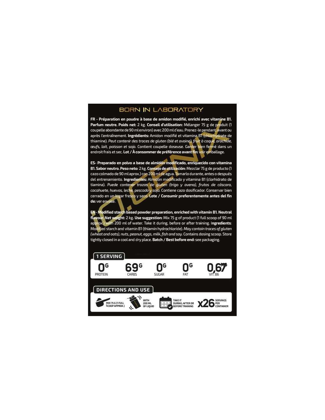 WAXY MAIZE es un suplemento a base de almidón modificado y vitamina B1 que será de gran utilidad para aportar un extra de energía a la hora de afrontar los entrenamientos.