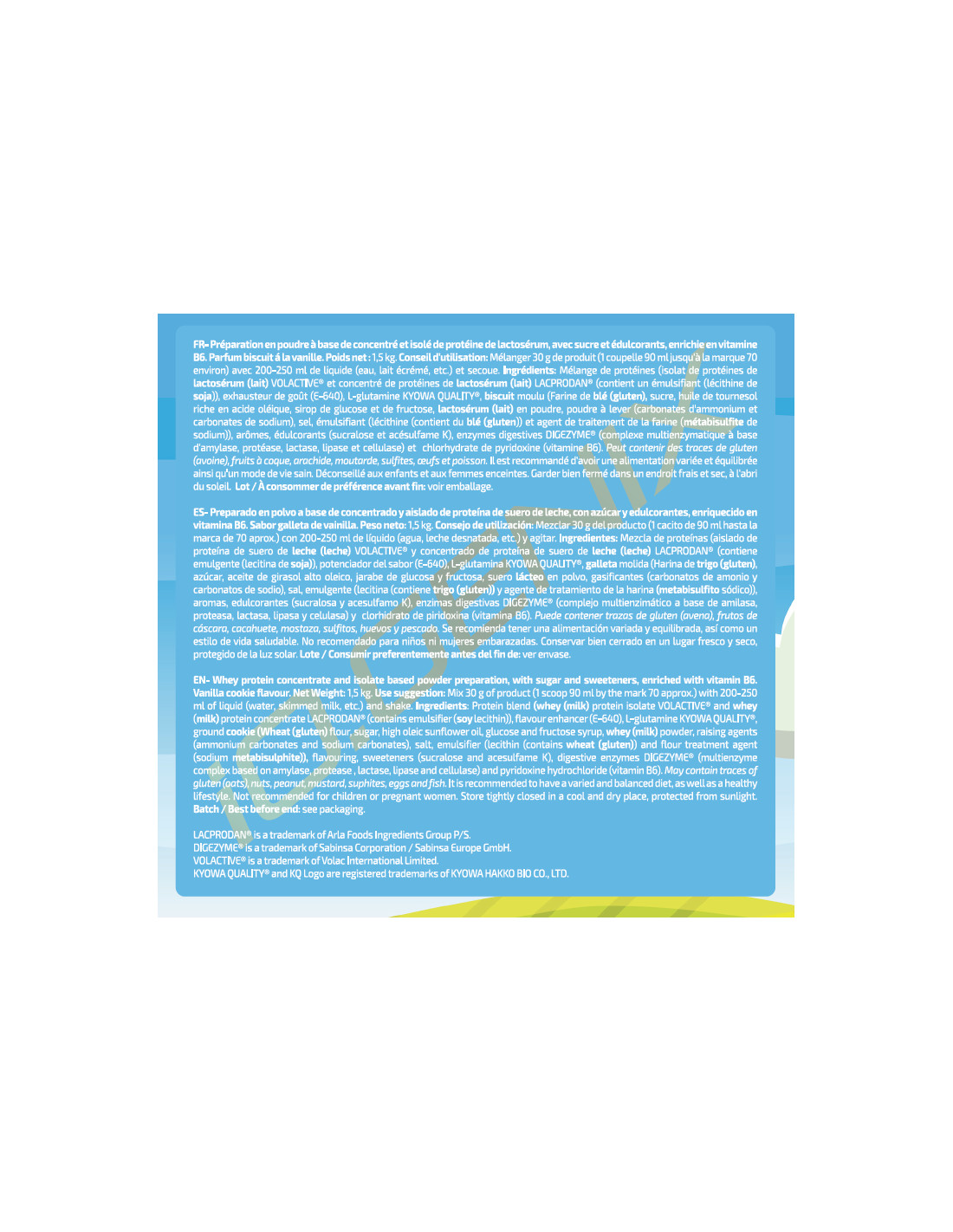 Una patente a base de enzimas digestivas como amilasa, proteasa, lactasa, lipasa y celulasa, contribuyendo a la descomposición y absorción de los nutrientes de ISO.WHEY SUBLIME