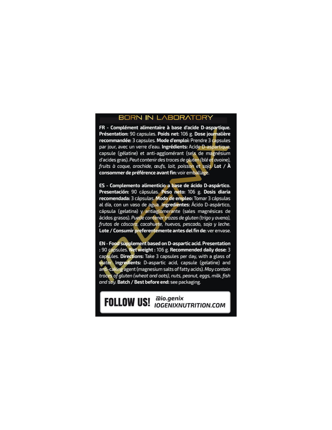 Complemento alimenticio a base de ácido D-aspártico.