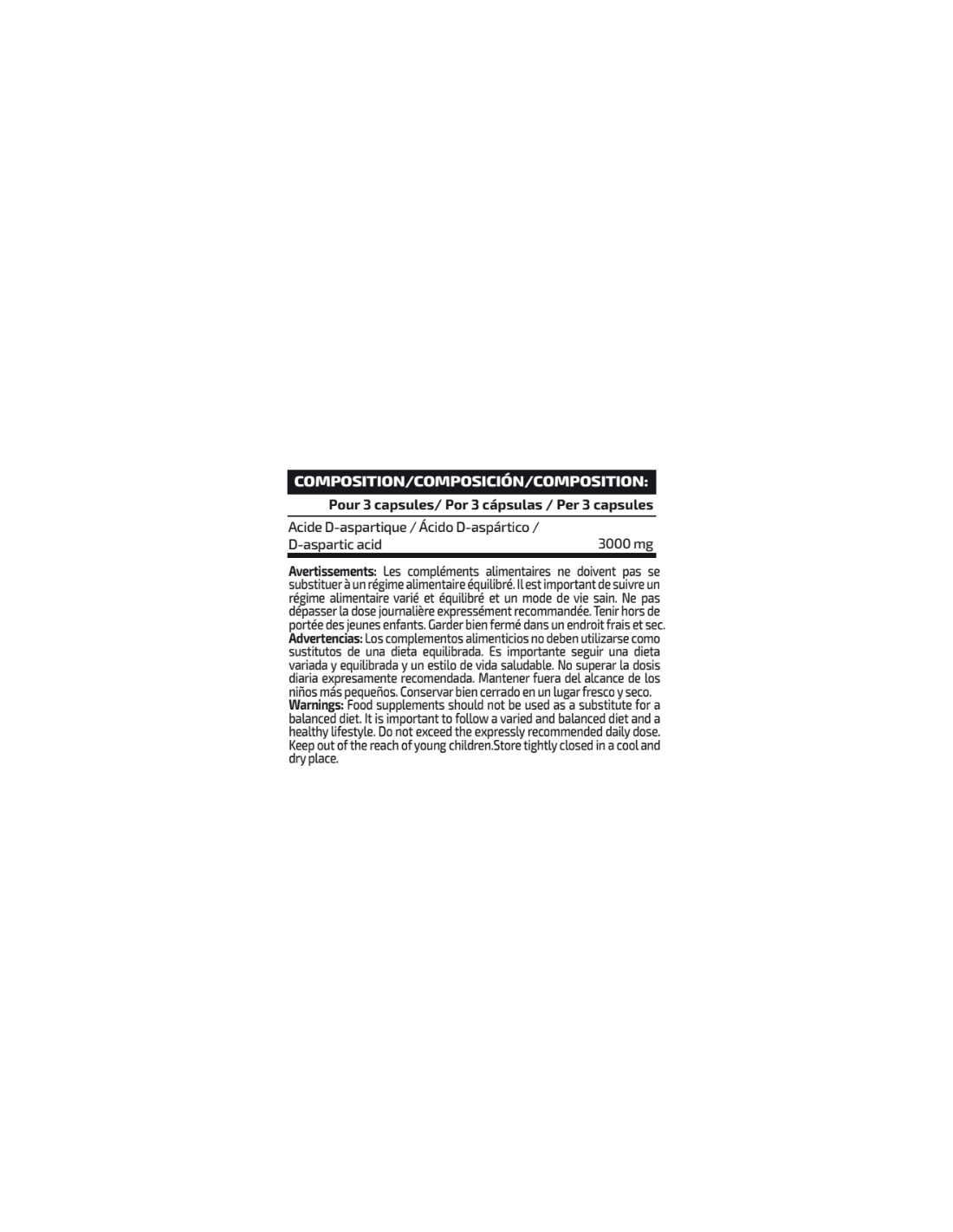 | Ácido D-aspártico | 3000 mg |