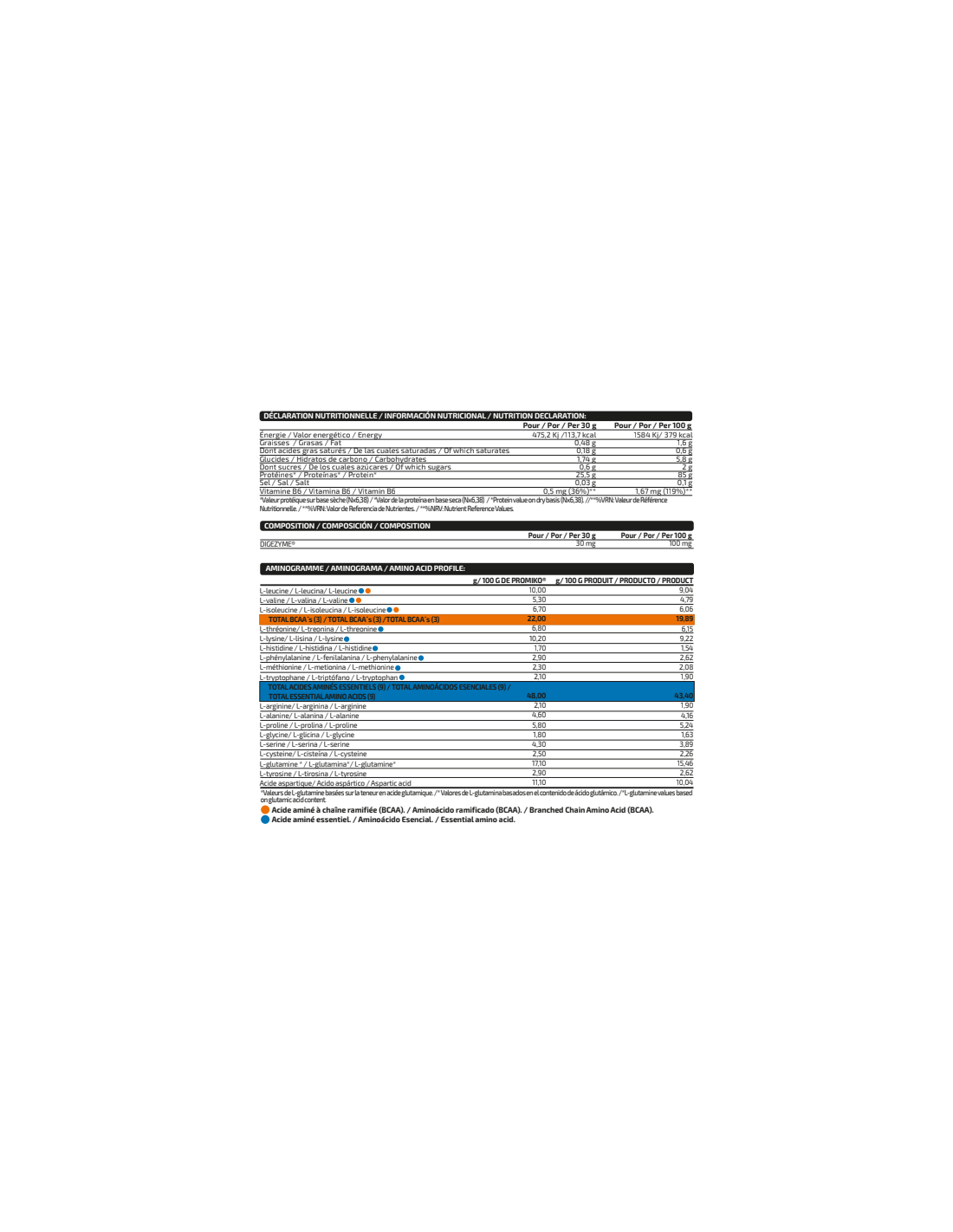 Aminograma g/100 g de Promiko g/100 g de producto
