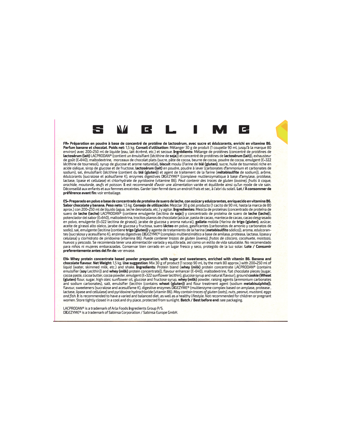Una patente a base de enzimas digestivas como amilasa, proteasa, lactasa, lipasa y celulasa, contribuyendo a la descomposición y absorción de los nutrientes de WHEY SUBLIME