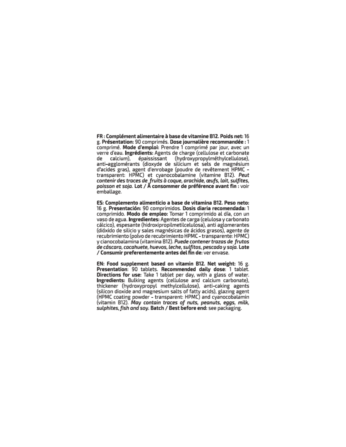 - La vitamina B12 contribuye al metabolismo energético normal.